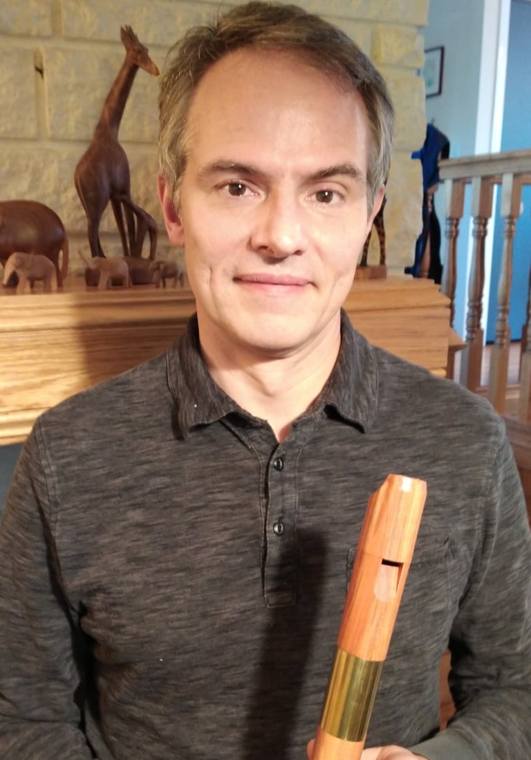 Long story short, over the past ten years making recorders has become a mission! I've corresponded extensively with and visited a couple of recorder makers, read everything I can find on the subject, and set up a workshop. As a physicist by training, an engineer by profession and a musician and woodworker in my spare time, I find building instruments to be both challenging and rewarding. My very first recorders were very rough, but I've learned many things along the way. By persistent attention to detail and careful step-by-step improvements I now create instruments that are truly a joy to play.